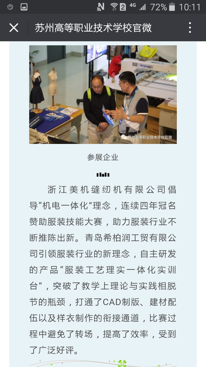 比赛期间,青岛希柏润工贸有限公司在学校综合楼展厅展出的引领服装行业新理念的高配置的服装工业理实一体化实训台、立体裁剪用人台、创意小人台等产品,吸引了大量的院校领导及老师们参观及体验。