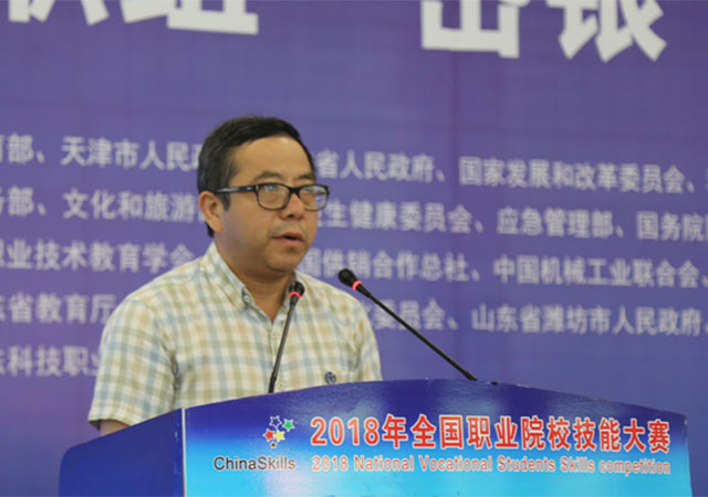 中国纺织服装教育学会会长、赛项执委会主任倪阳生在开幕式讲话