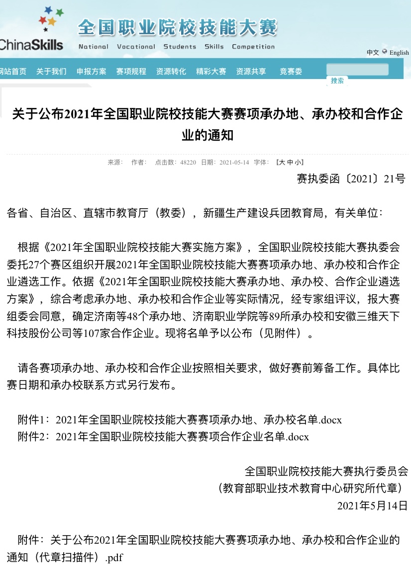 您现在的位置:首页 >> 资讯中心 >> 公司新闻 >> 关于公布2021年全国职业院校技能大赛赛项承办地、承办校和合作企业的通知
